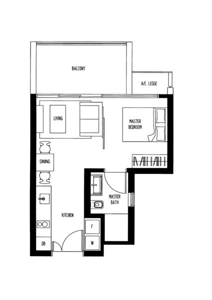 • Efficient 1-bedroom layout ideal for singles or couples