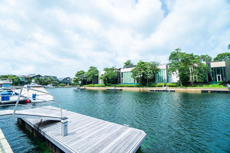 2-1/2 Storey calm waterway facing Bungalow comes with 6 bedrooms and 6 bathrooms. The exclusive neighborhood is in one of the world's most prestigious integrated oceanfront marina residential communities in the world. Take a Shuttle bus to the MRT & Vivocity or Resort World Sentosa. Stroll along the seafront or bring your dogs for a walk conveniently