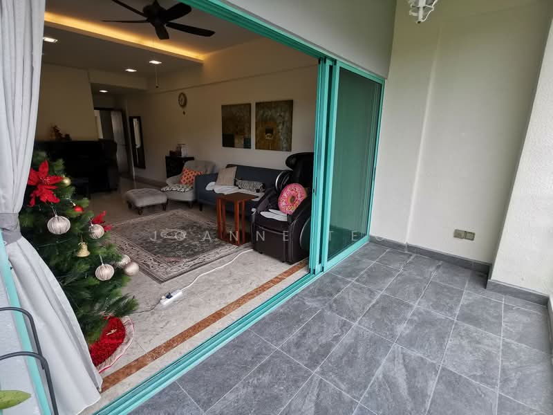 The unit features a lovely balcony and lush greenery, providing a serene escape from city life.