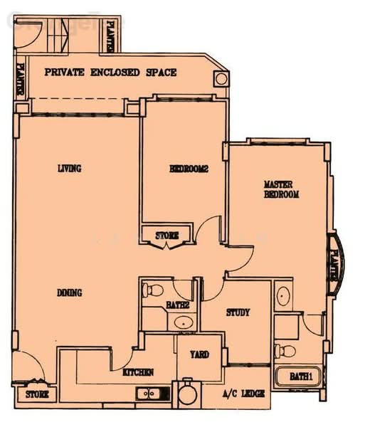 - 2 bedrooms, study/helper's room, 2 bathrooms, glass enclosed kitchen cum yard, living and dining hall and outdoor patio