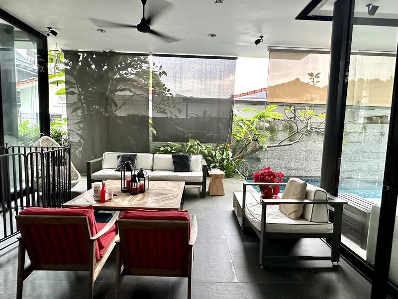 Opens up completely to a nice roof terrace with lush greenery overlooking the Sunset Estate.