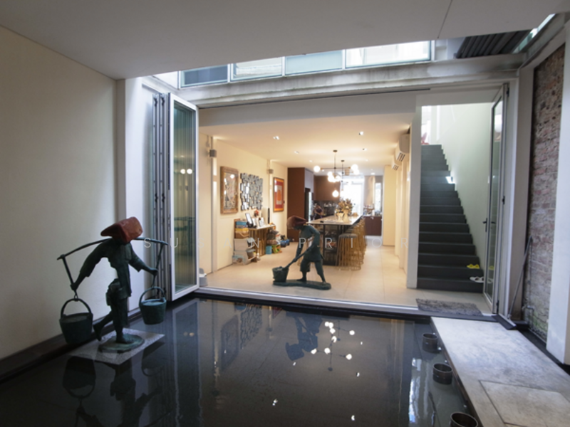 A sensational River Valley Peranakan with parking outside the House! Between ION and Great World City, along Hoot Kiam Rd. A fab 4 bed with 2 studies and enticing spaces. Swizzerly spirals, sunlit pond, a red bridge to the bathroom and a 600 bottle wine cellar! Not to mention a stunning 14 seater island for wining and dining! In the heart of the city, yet fully quiet and private. A front and back porch completes the picture. Live in style in a super swanky shophouse!