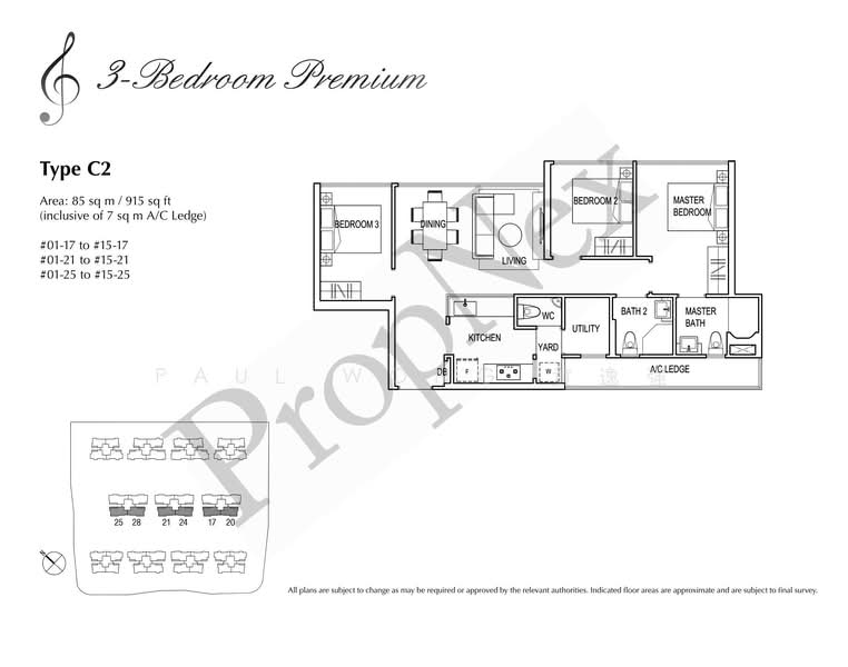 915 sqft | 3 Bedrooms Premium + Service Yard + Utility Room