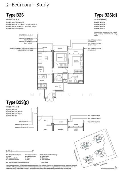 • 2 Bedrooms + Study layout