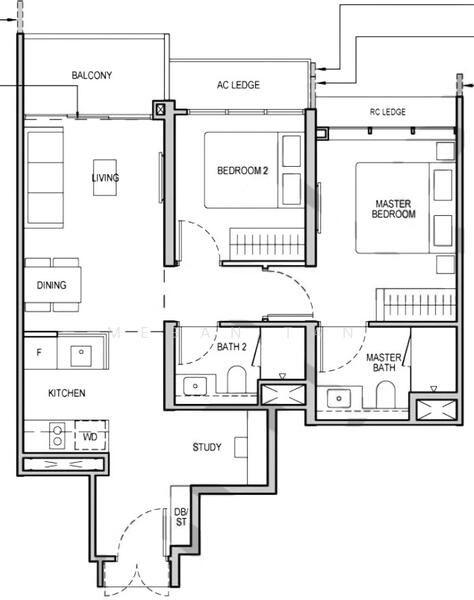 This spacious 743 sqft unit comes with 2 bedrooms, 2 bathrooms and a spacious study area (fitted with air conditioner).