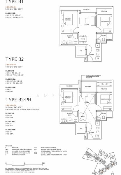 - 2BR / 2 + Study – 624 to 807 sqft (70 units)