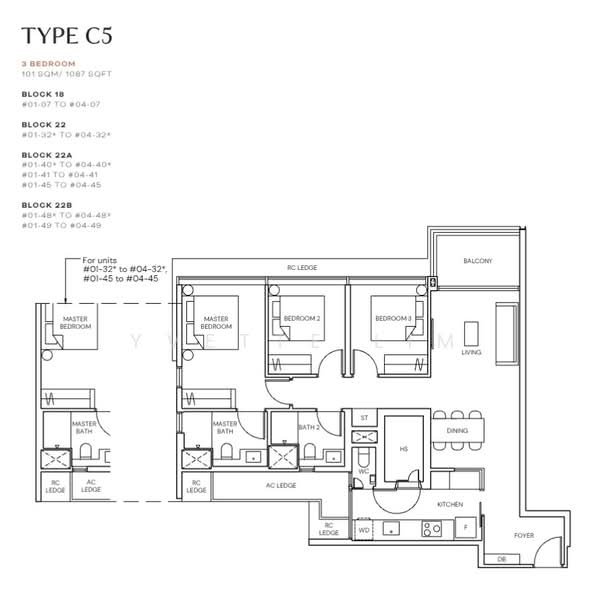 • Efficient 3-bedroom layout (1,087 sqft)