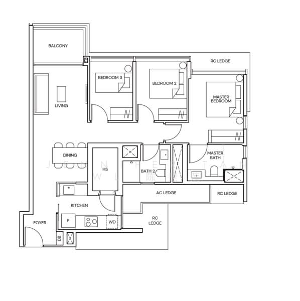 - 3BR – 904 to 1098 sqft (108 units)