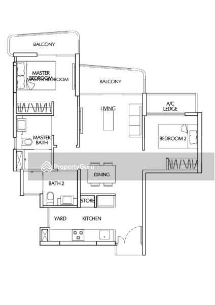 • 2 Bedrooms + 2 Bathrooms + Balcony