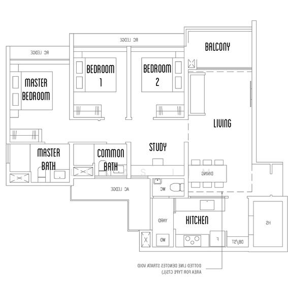 Floor size of this unit at The Botany at Dairy Farm is 1,281 sqft.