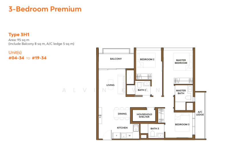 3 Bedroom: approx. 1,023 β 1,249 sqft