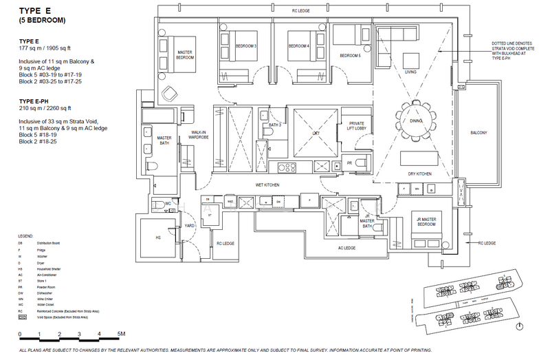 5 Bedroom Prestige at 1905sqft is a rare large format 5-bedder with private lift, comes with master with walk-in wardrobe, junior master, powder room, yard, storage room plus bombshelter.