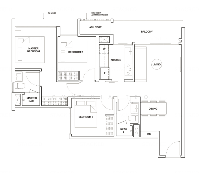 High floor. Bright and breezy 3 bedroom compact. Unblocked
