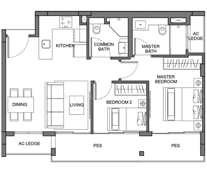- Efficient 2-Bed, 2-Bath: Well-designed, generous layout with no wasted space.