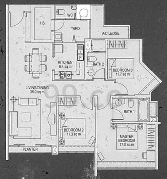No. of Bedrooms : 3 + Utility