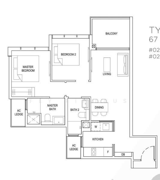 721 sqft one of the bigger 2 bedder in the development