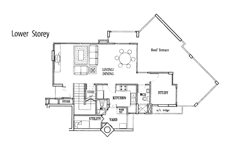 This very rare duplex penthouse comes with a generous 38.0 sqm living and dining area, a large 39.4 sqm roof terrace as well as a enclosed kitchen, yard, utility and store area.