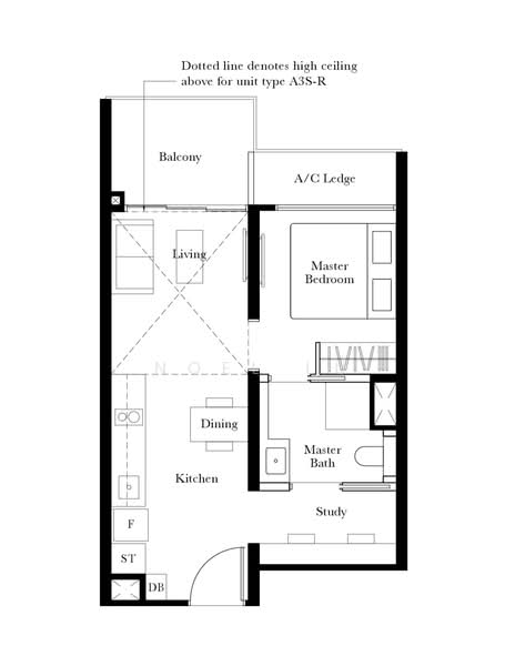 Thoughtfully planned 1-bedroom with a study offers efficient space