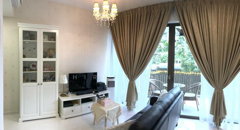Spanning 743 sqft, the unit is thoughtfully designed for modern living, featuring a spacious layout and an enclosed kitchen with sliding doors. Enjoy a partial pool view from the balcony, ideal for relaxing after a long day.
