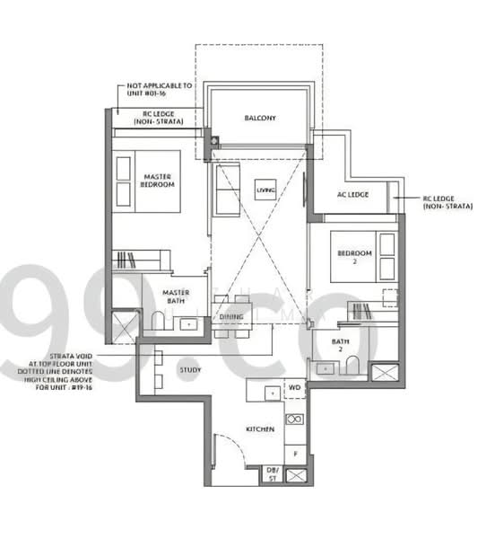 2 Bed + Study | 775 sqft