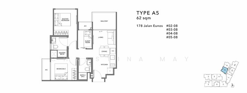 Rarely available for sale. Only 8 units is such layout in this development. Very different from your typical 2+Study units as the guest bedroom is totally functional. Comes with sliding door, windows and AC unit.