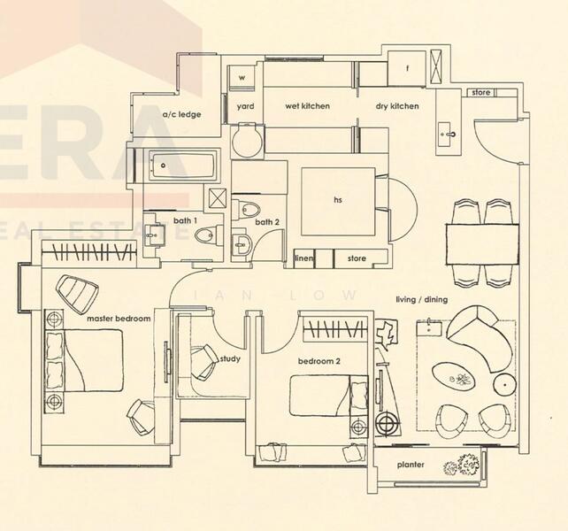 ** 2 Bedroom + Study Room - 1066sqft.