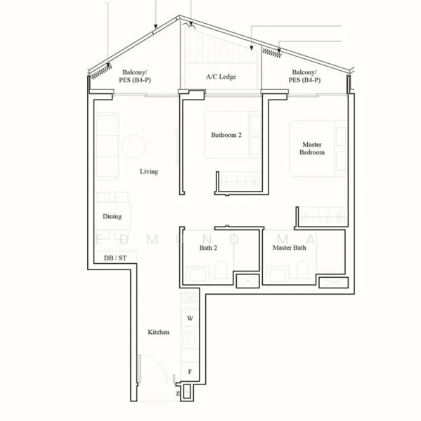 - 2 bed 2 bath (764 sqft)