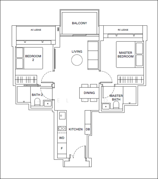 2 bedrooms 2 baths.