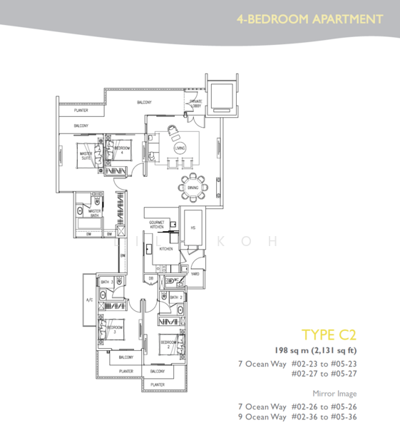 • 3BR and 4BR ground floor units have private spa pool