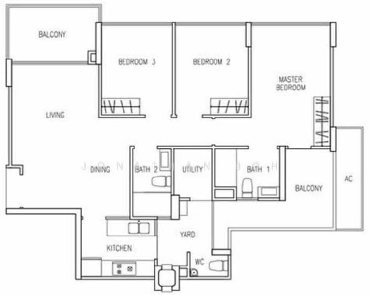 Spacious, bright and breezy 3-bedroom + utility + yard unit spanning 1,130 sqft, located on a high floor with unblocked views and excellent natural ventilation.