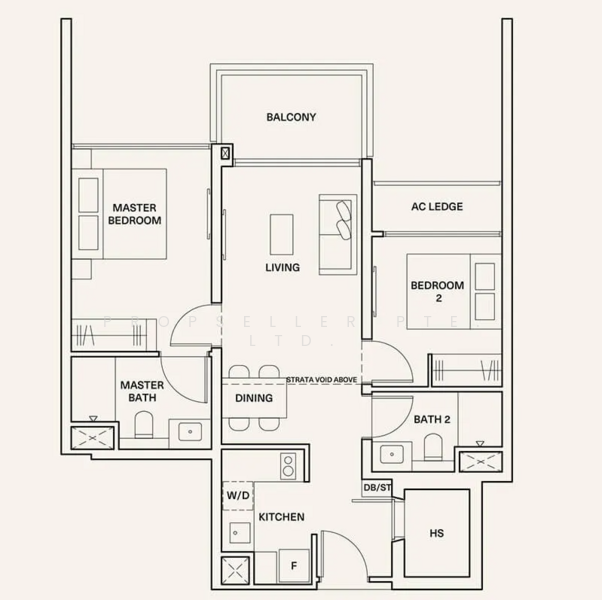 - 2 bedrooms + 2 bathrooms