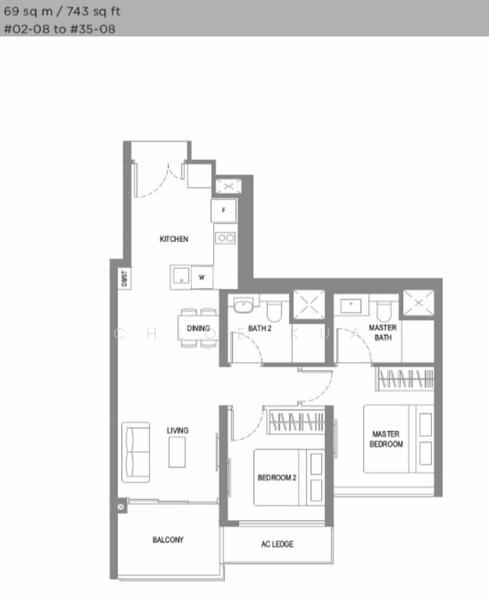 - Size:*743 sqft