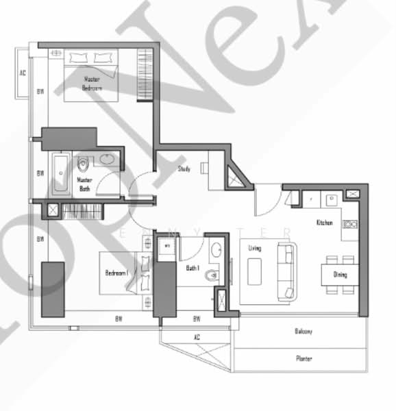 Large 2 Bedroom Plus Study 1152sqft V on Shenton Quiet Facing