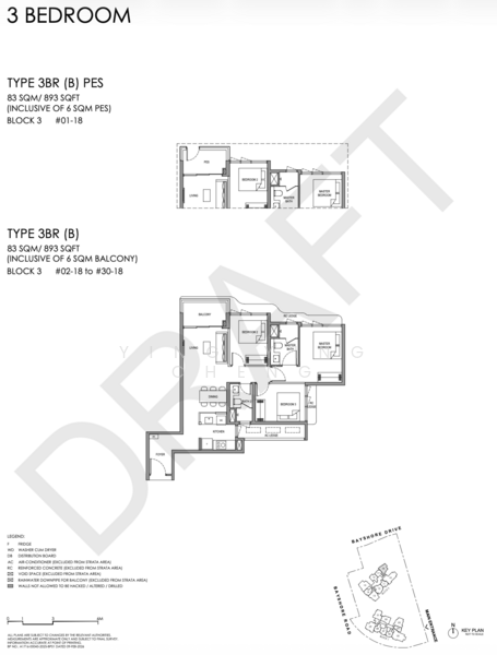 3 Bedroom: 893 -1,033sf