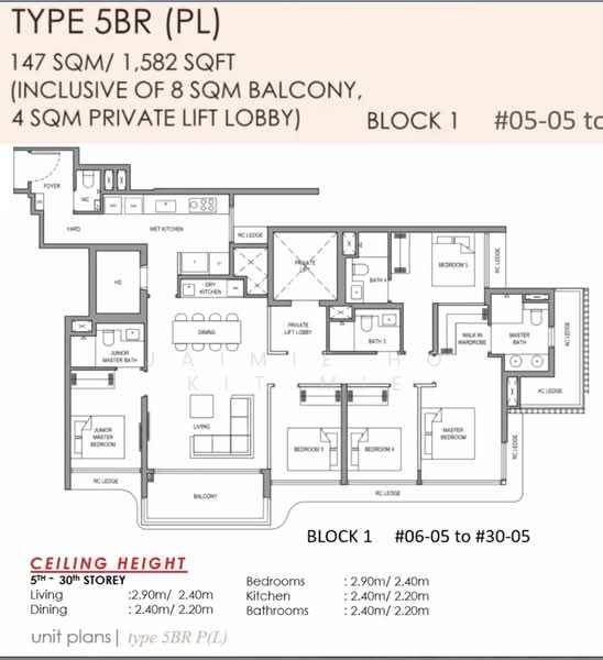 The 5 bedroom with private lift , with the size of 1582aqft, the family of 6 will get to enjoy the private living (although I they may have to ballot to see who gets the junior ensuite !) The wet and dry kitchen concept gives the house a nice touch, making dining an activity that is inclusive.