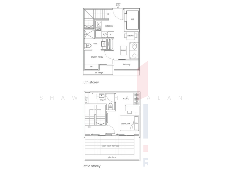 - Penthouse (Duplex): 1 + study