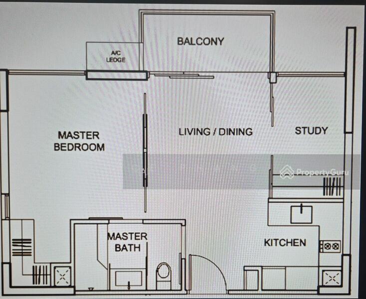 Layout: 1-bedroom + study + balcony
