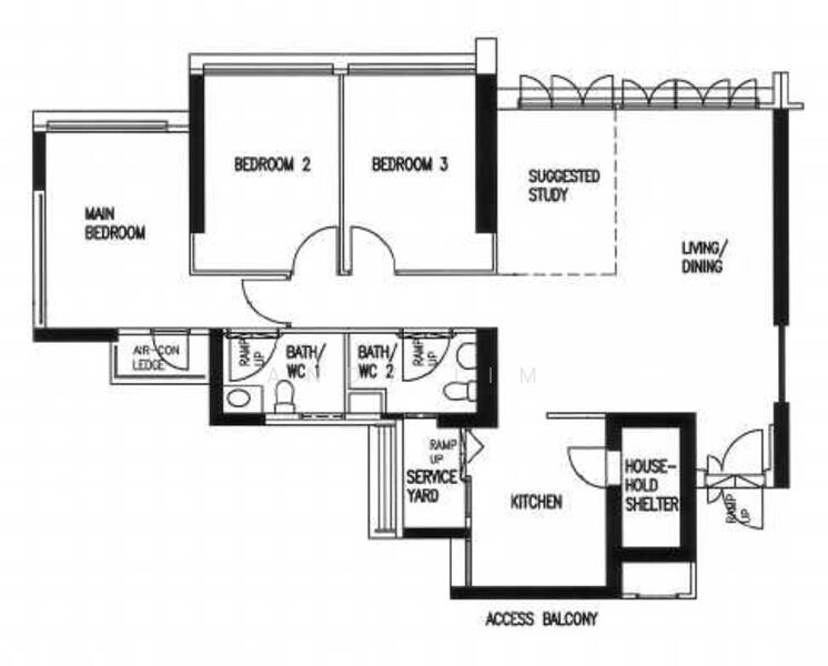 High floor and breezy - 3 bedrooms with study room