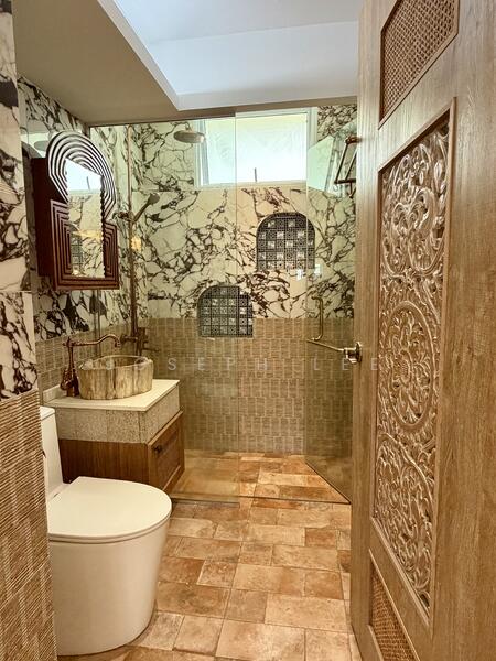 • Premium tiles, fittings, and unique vanity design