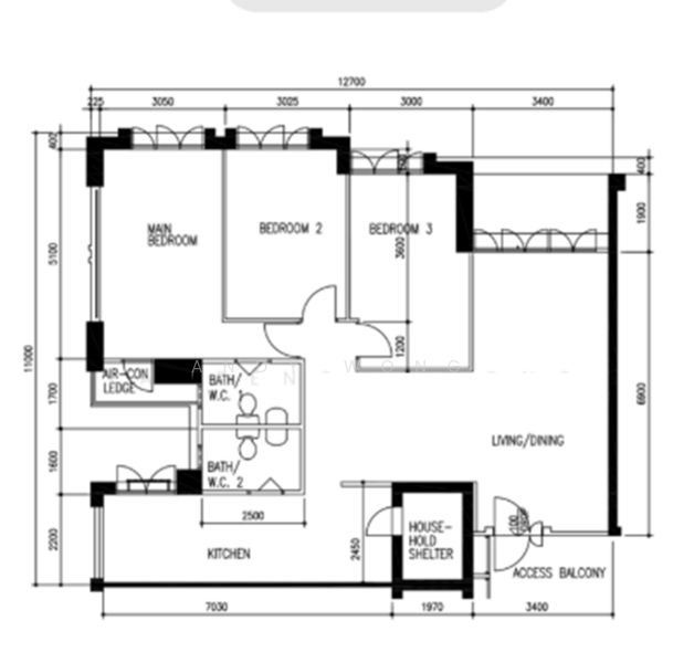 There are 3 bedroom(s) with 2 bathroom(s) in this unit.