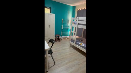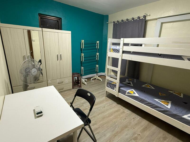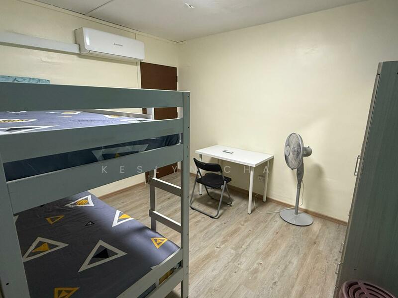 Bed, wardrobe, aircon, wifi, desk, fan