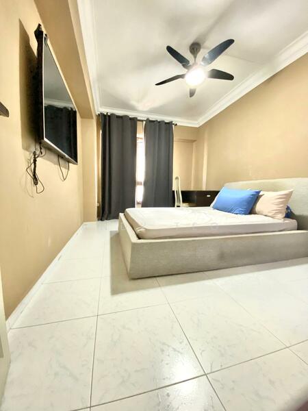 Unit features include modern cabinets for ample storage, a comfortable mattress and bed for restful nights, and an air conditioner to keep you cool during the warm Singapore days.