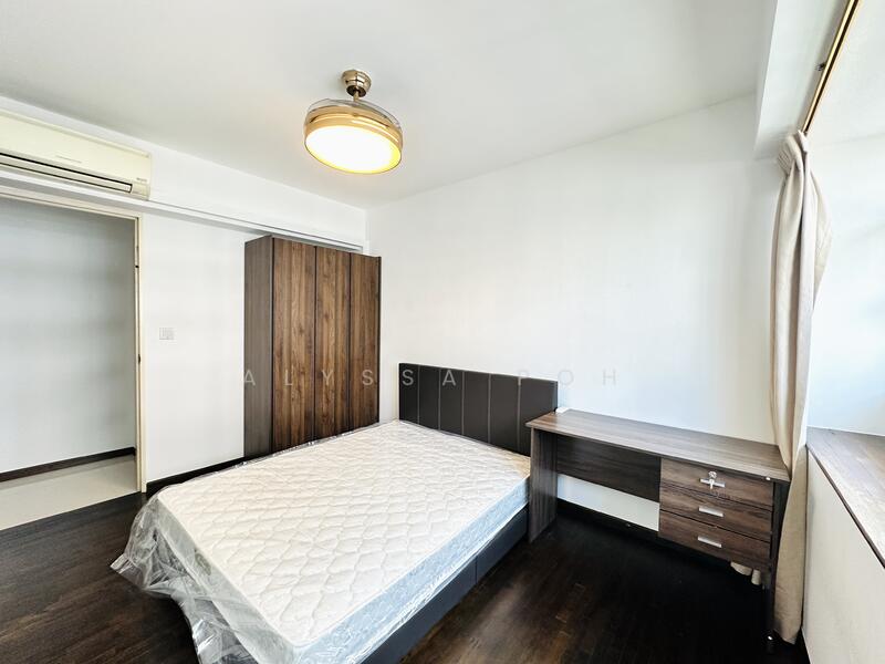 Very high floor, newly furnished as seen on photos. Common bedroom comes with a brand new queen bed, study table, wardrobe and ceiling fan with lights and retractable blades