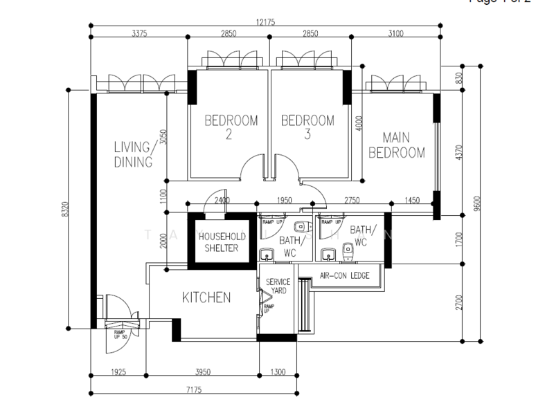 There are 3 bedroom(s) with 2 bathroom(s) in this unit.