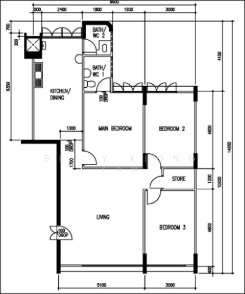 Floor size of this unit at 705 Bedok North Road is 150 sqft.