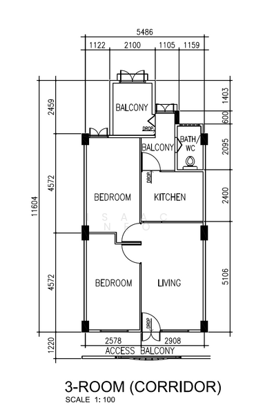 • Efficient 3-room layout (~624 sqft) with spacious living/dining area
