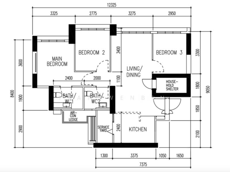 Comfortable Living: Efficient squarish layout with no wasted space; large living and dining area perfect for families.