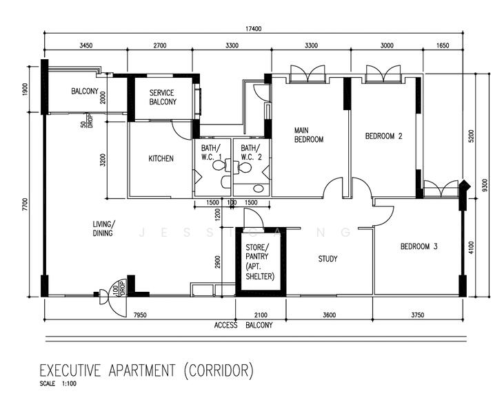 Study room (Can be converted into 4th bedroom)
