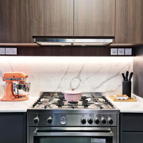 Waterfall Quartz Counter Top in Kitchen