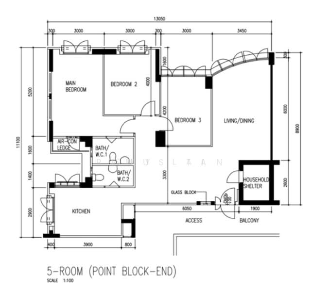 1,184 sqft floor area